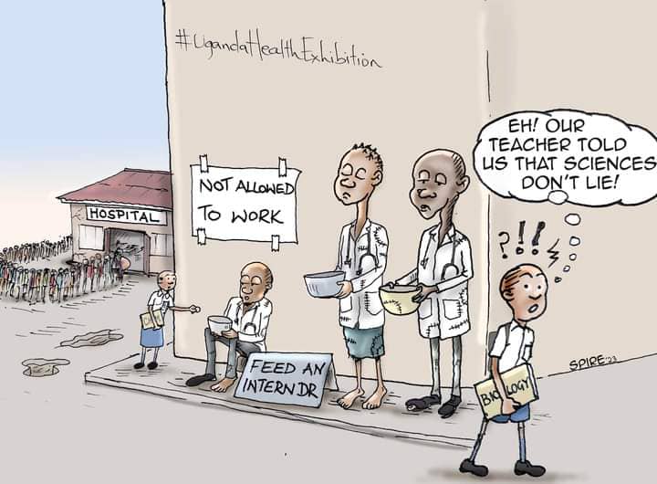 Every Ugandan including you and the intern doctors have a right to work under Article 40 of the Constitution of the Republic of Uganda, 1995 and the right to work under a safe working...